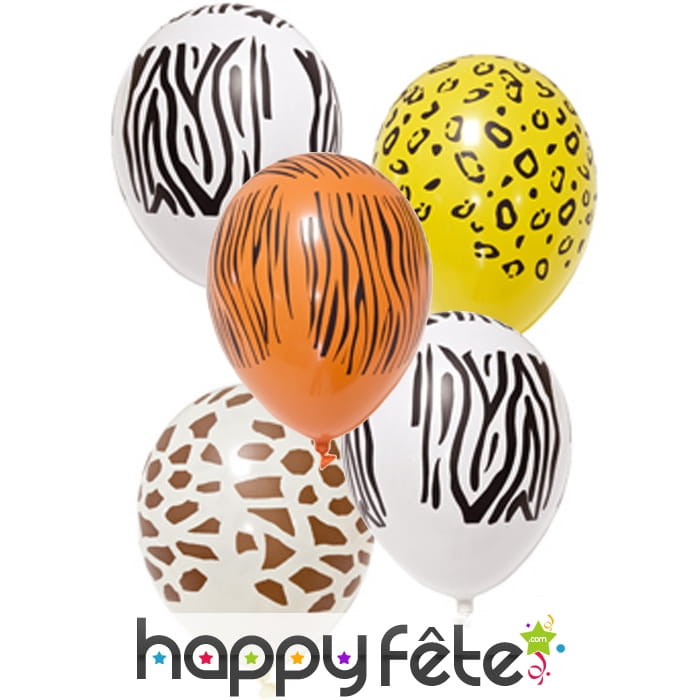 Ces ballons mesurent chacun 29 cm et présentent des motifs variés qui s'inscrivent tous dans le thème des animaux de la jungle.