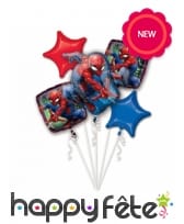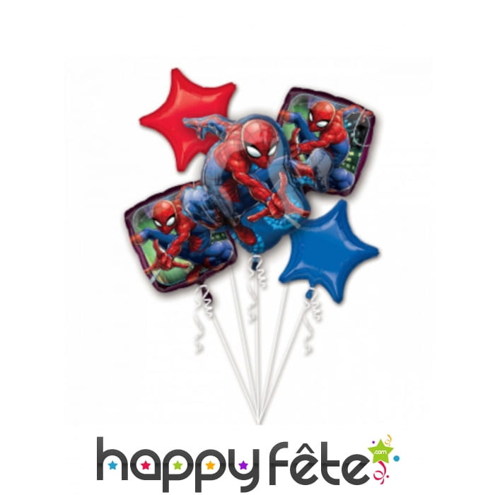 Habillez votre déco d'anniversaire aux couleurs de l'intrépide homme-araignée, avec les 5 ballons Spiderman en bouquet.