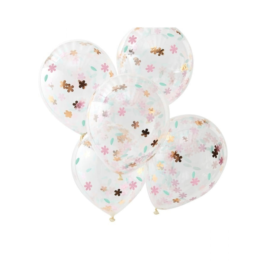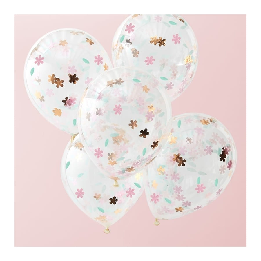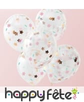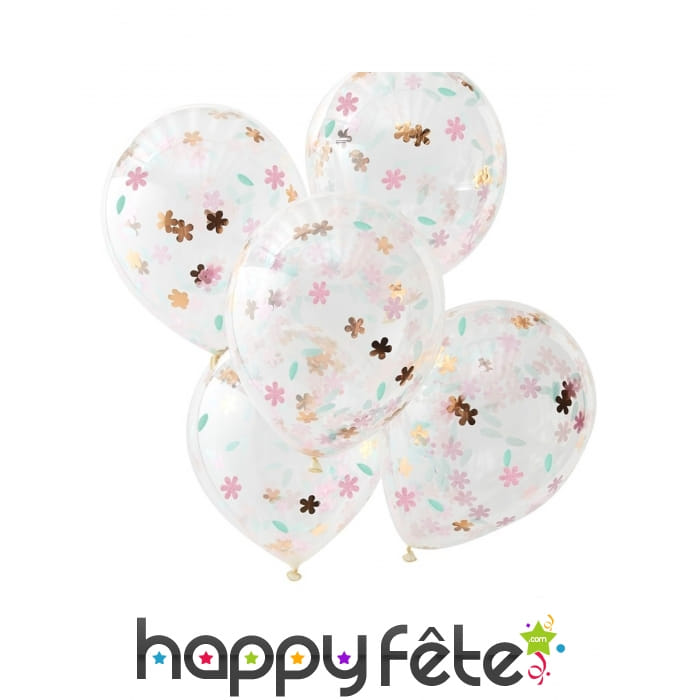 Les ballons transparents imprimé confettis fleurs sont vendus en lot de 5.