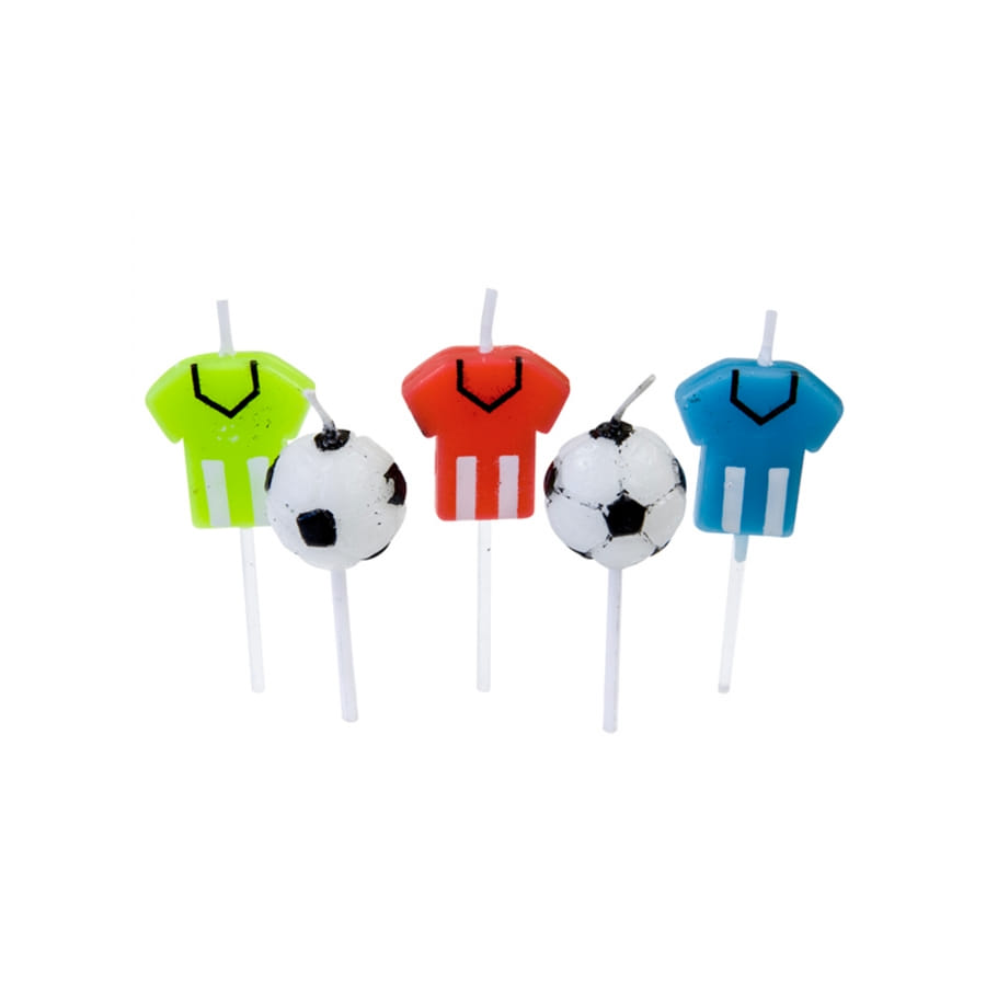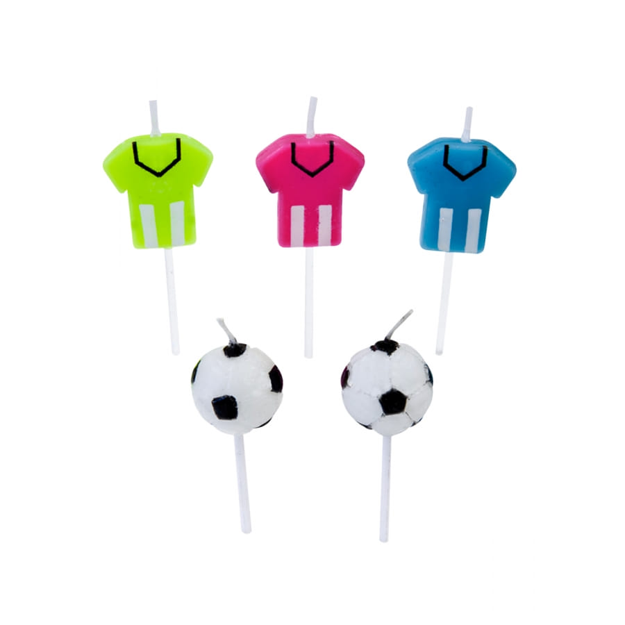 Achevez la décoration du gâteau de votre champion(ne) avec 5 bougies d'anniversaire sur le thème du football.