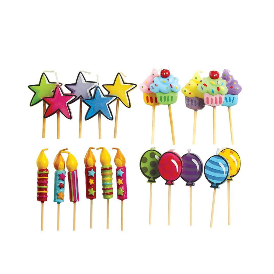 Elles se présentent sous plusieurs modèles assortis : étoiles, cupcakes, bougies, ou ballons.