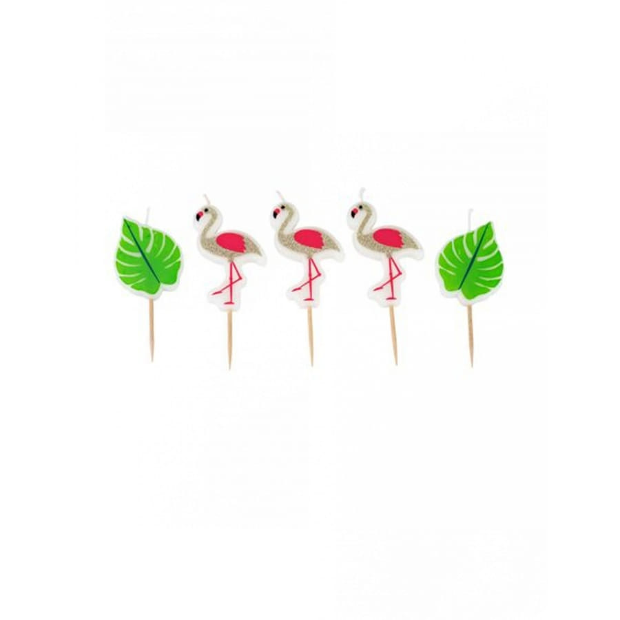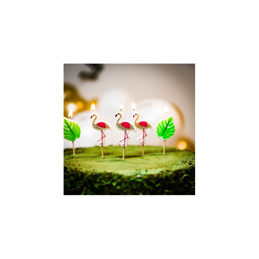 Démarquez vous en optant pour une déco qui sort de l'ordinaire grâce aux 5 bougies flamant rose et feuille tropicale, 3,5 cm.