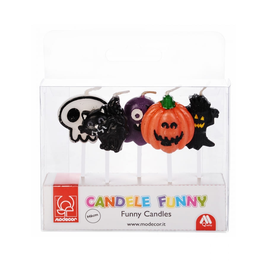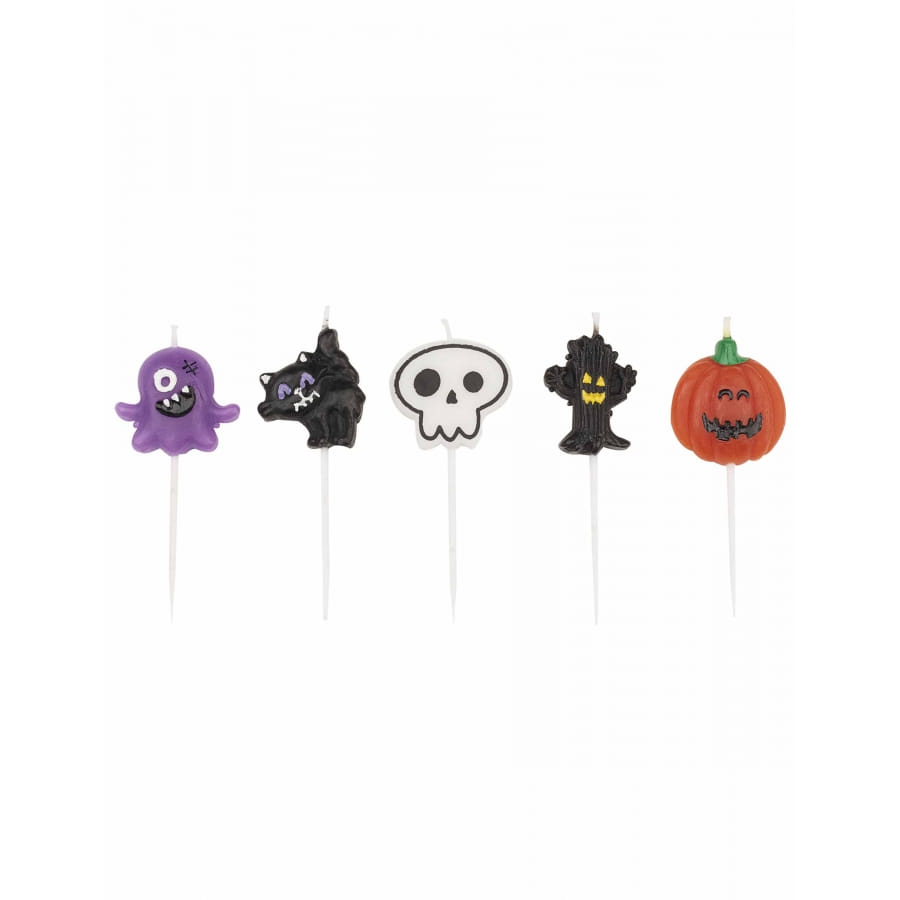 Ces bougies multicolores représenteront: une citrouille, un arbre, un fantôme, un chat et un monstre.