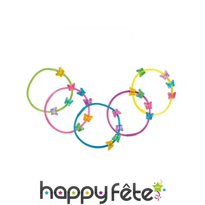 Vous ajouterez un peu de fantaisie à votre déguisement avec ces 5 bracelets décoré de papillons multicolores.