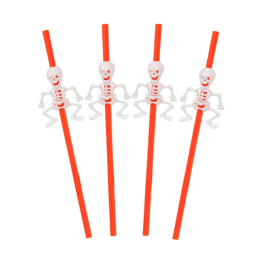 Pour boire autrement vos boissons sanglantes le soir d'Halloween, cet ensemble de 5 pailles oranges avec squelette blanc est tout simplement parfait.