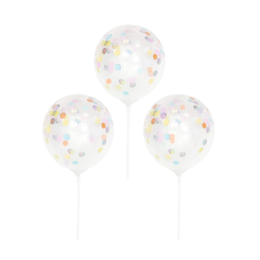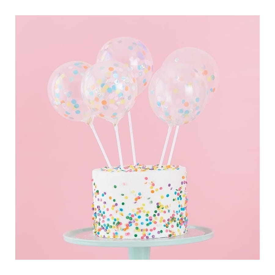 Les 5 petits ballons confettis transparents sur tige sont en latex.