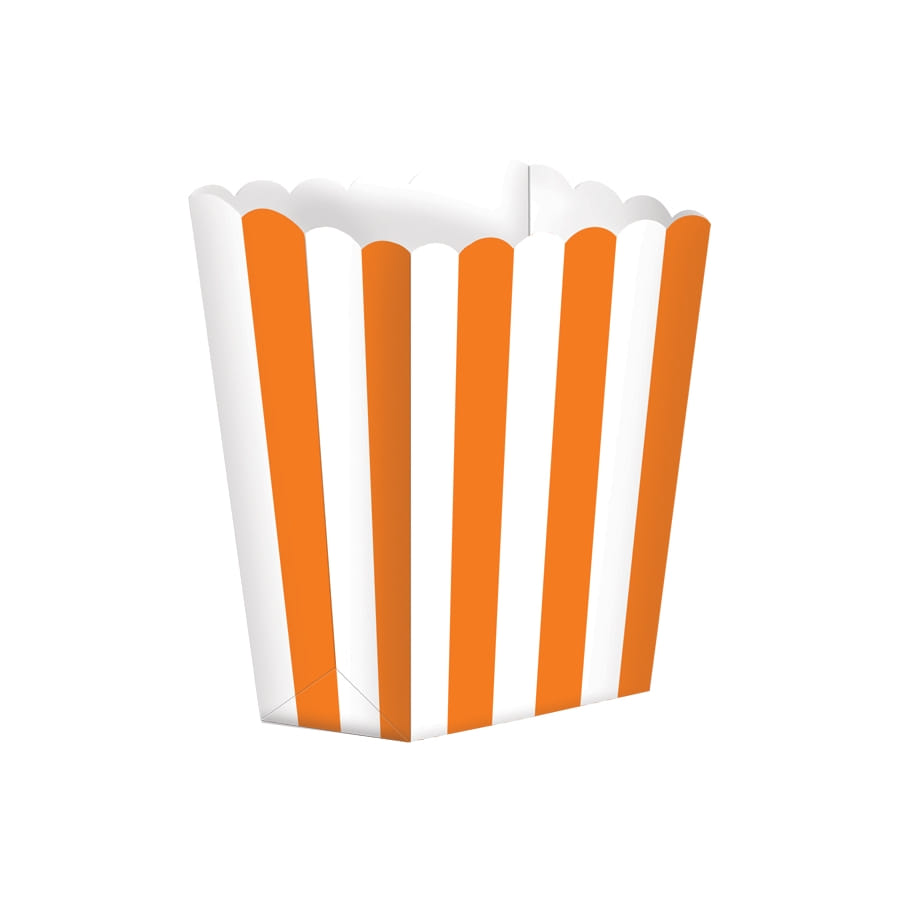 Les 5 pots à Popcorn lignés orange et blanc sont en carton.