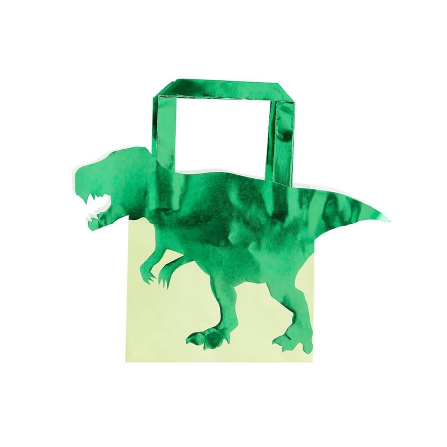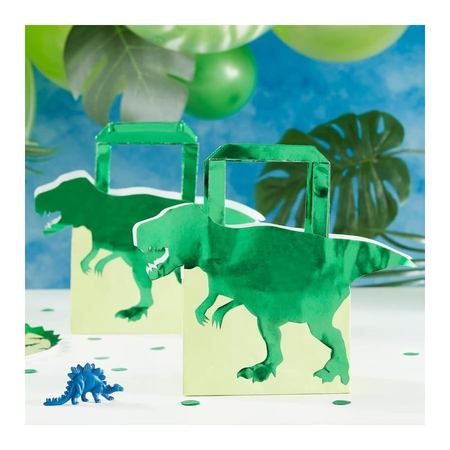 Ramenez la période du jurassic au goût du jour en craquant pour les 5 sacs cadeaux T-rex vert en papier de 22,5 cm.
