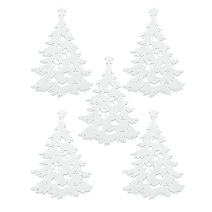 Il s'agit d'un blister contenant 5 sapins blancs portant des perforations qui rappellent de façon originale les décorations classiques d'un sapin de Noël.