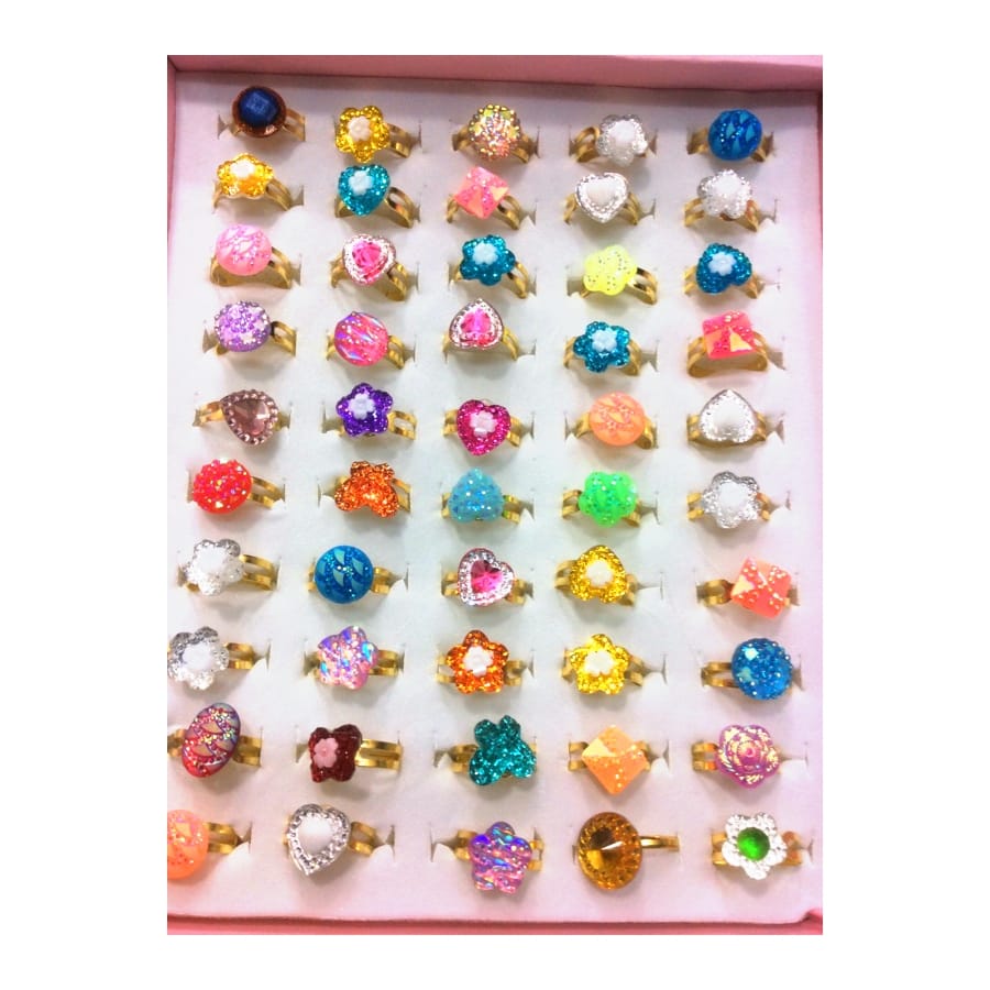 Une bague par ci, une bague par là, il y en a tellement que vous ne saurez plus où donner de la tête ! Un assortiment de 50 bagues fantaisies et pailletées vous est proposé pour faire des heureuses. Cet article comprend cinquante bagues aux motifs variés et pailletés dans toutes les couleurs. Il y en a pour tous les goûts !