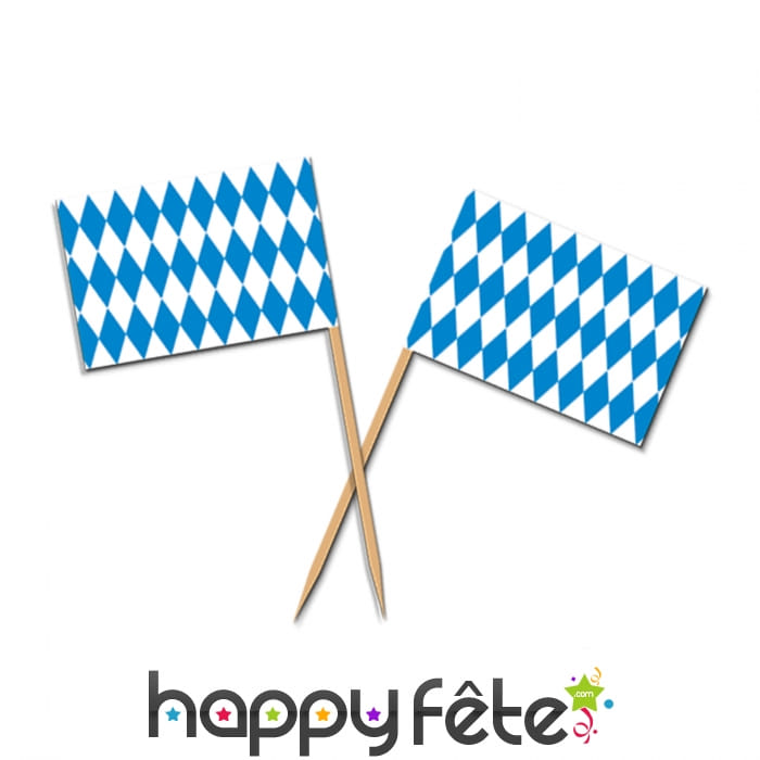 Pour préparer l'estomac de vos invités à consommer une bonne quantité de bière lors de l'Oktoberfest, il est crucial que vous leur prépariez des apéritifs. Et nous avons pensé à tout. Ces petits piques en bois pour apéritifs brandissent des petits drapeaux aux couleurs bleue et blanche de cette fête de la bière. Ils sont vendus par paquet de 50. Vos convives seront agréablement surpris en voyant ces petites attentions de votre part.