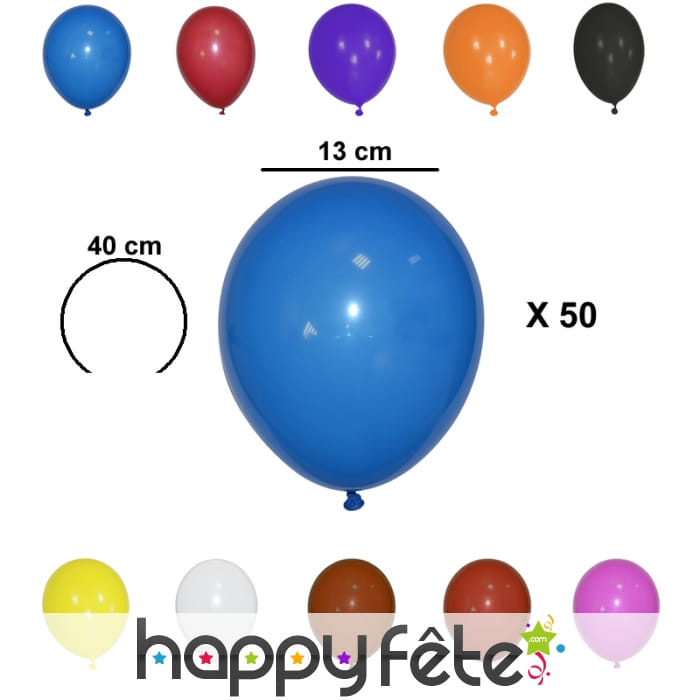 Faites la fête avec encore plus de ballons partout pour beaucoup plus d'ambiance. Nous vous proposons un sachet contenant 50 petits ballons déclinés en plusieurs couleurs : blanc, bleu moyen, bordeaux, chocolat, fuchsia, ivoire, jaune, lagon, lavande, noir, orange, rouge, vert anis, violet, argent, doré. Ces ballons sont en latex naturel et peuvent être gonflés à l'air ou à l'hélium. De plus, ils respectent Mère Nature car ils sont biodégradables. Leur circonférence est de 40 cm avec un diamètre de 13 cm.