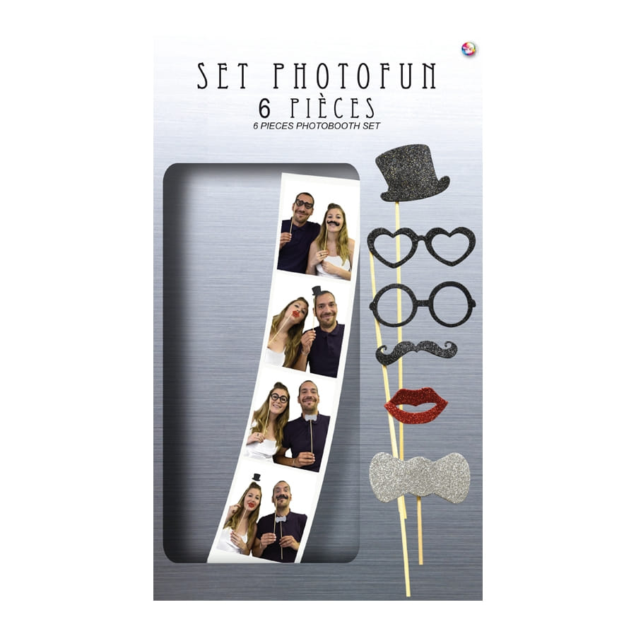 Il est commun d'immortaliser un événement par une photo, et à l'occasion d'une fête, on la veut bien rigolote. Alors, pour Noël, le réveillon, un anniversaire ou la Nouvelle Année, munissez-vous de nos accessoires pour déguiser votre visage. Nous avons ici un lot de 6 accessoires sur bâton stick de 30 cm. Il faut tenir le stick pour bien placer les accessoires sur son visage : ce sont des moustaches, des lunettes et des lèvres pour vous transformer. De nombreux modèles et couleurs sont disponibles, mais vous ne pourrez pas les choisir à la commande.