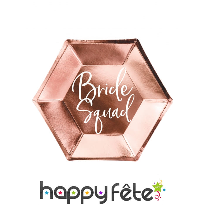 Au centre de l'assiette on peut lire en lettres blanches les mots "Bride Squad".