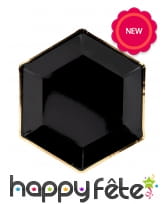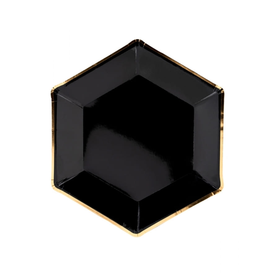 Surprenez les invités d'une soirée bling bling grâce aux 6 assiettes noires avec bord doré 23 cm hexagonales.