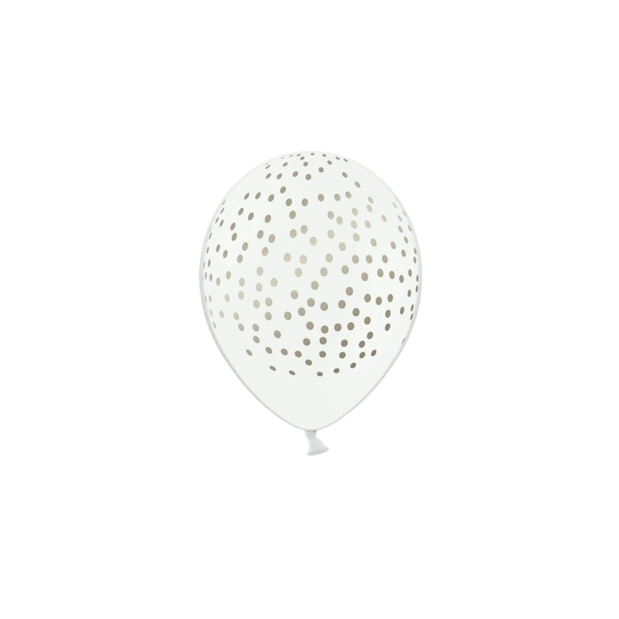 Ce lot contient 6 ballons en latex ornés de pois couleur argent.