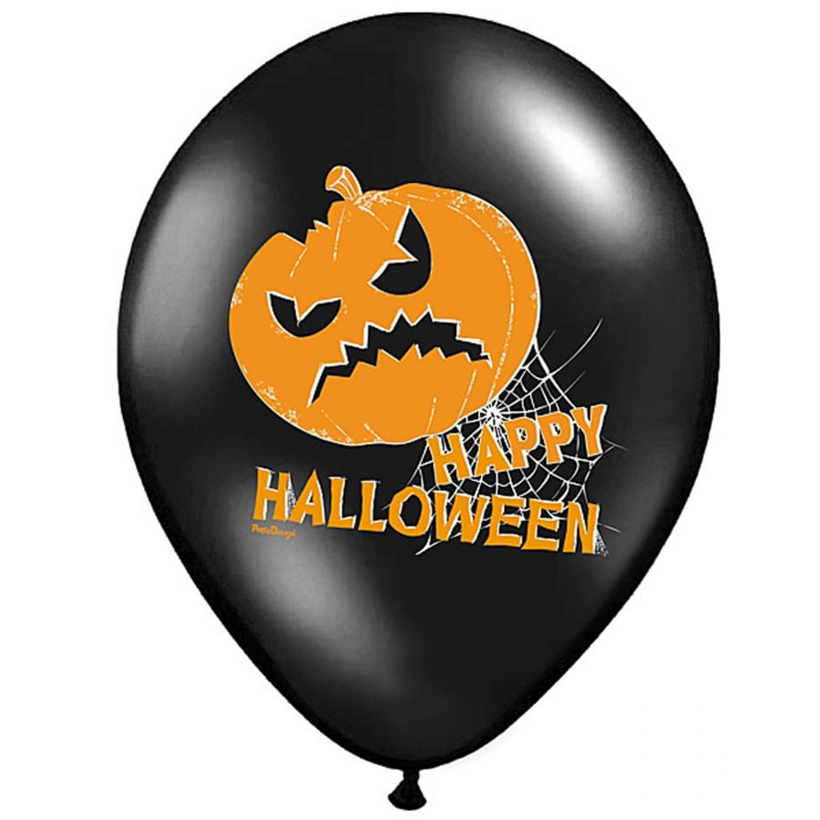Les 6 ballons citrouille Halloween sur fond noir sont en latex.