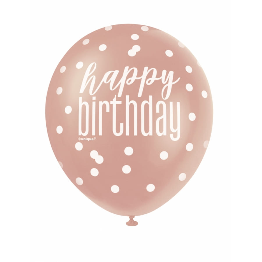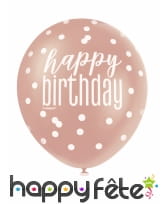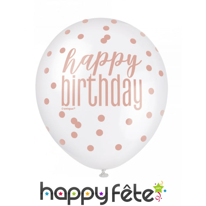 Les 6 ballons happy birthday à pois de 30 cm sont en latex.