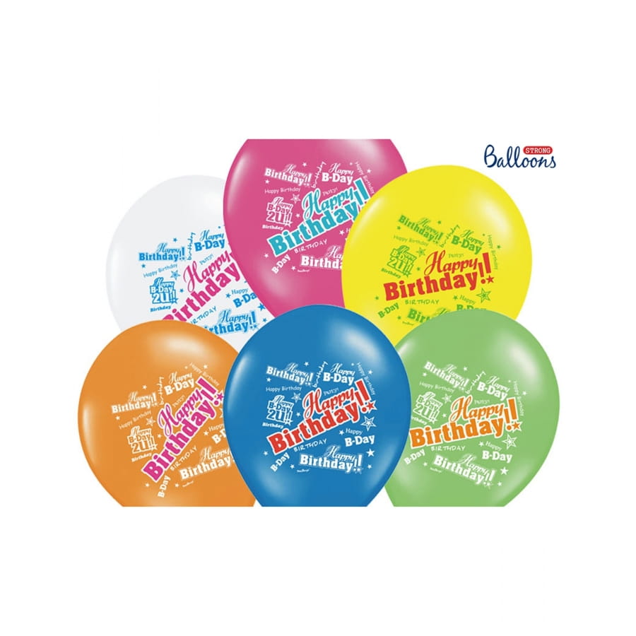 Ne cherchez plus voici un lot de 6 ballons Happy Birthday de toutes les couleurs.