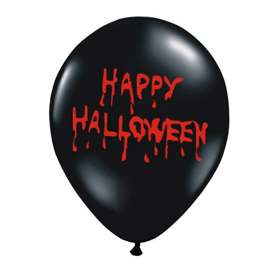 Les 6 ballons imprimés en sang de l'expression "Happy Halloween" sont en latex.