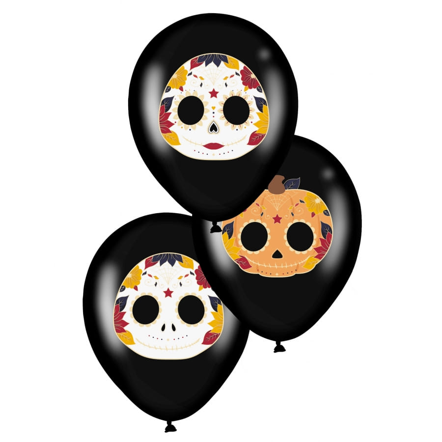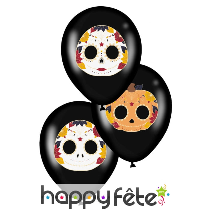 Les ballons noirs Dia de los muertos de 28 cm sont vendus en lot de 6.