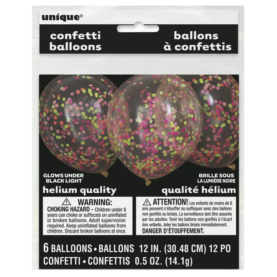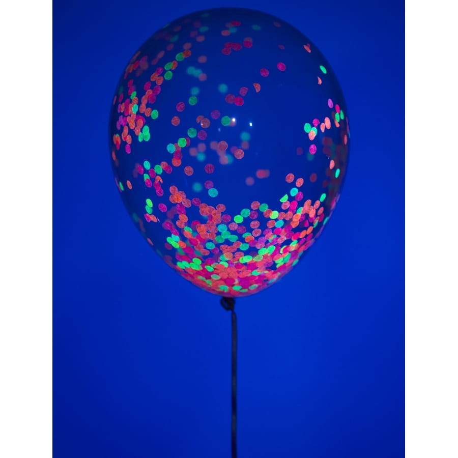 Annoncez une belle ambiance festive pour votre soirée d'anniversaire, en décorant votre salle de ces 6 Ballons transparents avec confettis phospho.