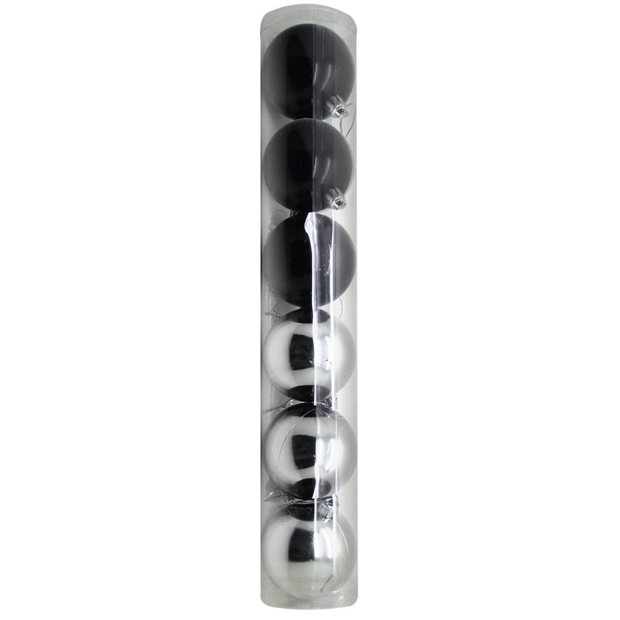 Ce lot de boules de Noël contient 6 décorations brillantes en plastique. Afin de vous offrir plus d'options en terme de décorations, les boules sont de différentes couleurs. Vous aurez donc une moitié de couleur argent et l'autre, de couleur noire. Elles possèdent toutes un diamètre de 6 centimètres.
