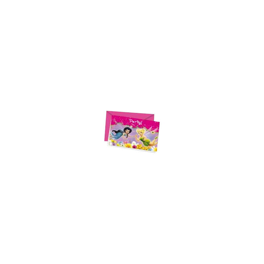 Cartes d'invitation Fée Clochette, sous licence de Peter Pan, avec enveloppes roses assorties, vendues en lot de 6. Envoyez ces cartes d'invitation aux meilleures amies de votre fille pour les inviter à son goûter d'anniversaire.
