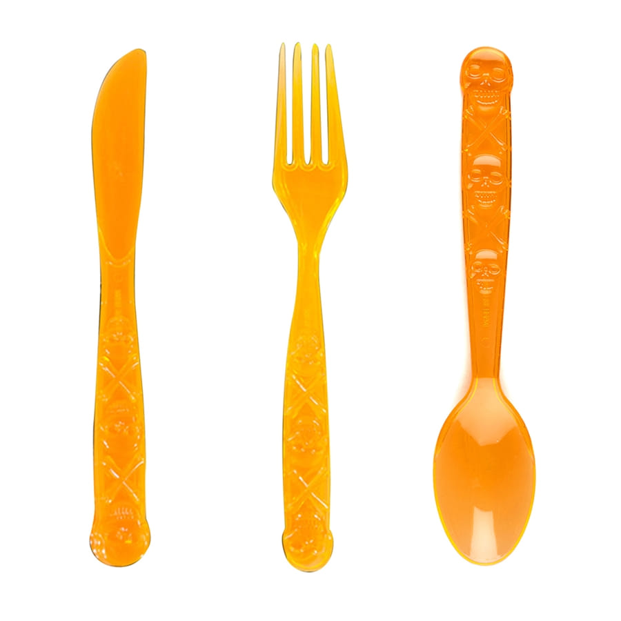 Pendant le repas d'halloween, surprenez vos invités avec les 6 couverts oranges de Halloween.