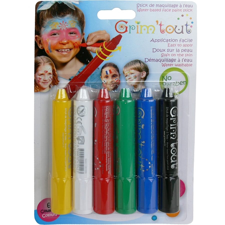 Blister de 6 crayons de maquillage à l'eau sans Paraben de couleur jaune, blanche, rouge, verte, bleue et noire. Chaque crayon est protégé par un bouchon qui rend son utilisation propre et hygiénique. Les crayons sont adaptés aux peaux sensibles ou allergiques. Vous pourrez les tailler avec un taille-crayon à gros diamètre et tout enlever ensuite avec du savon et de l'eau. C'est un moyen idéal de faire un maquillage coloré aux enfants lors d'anniversaires!