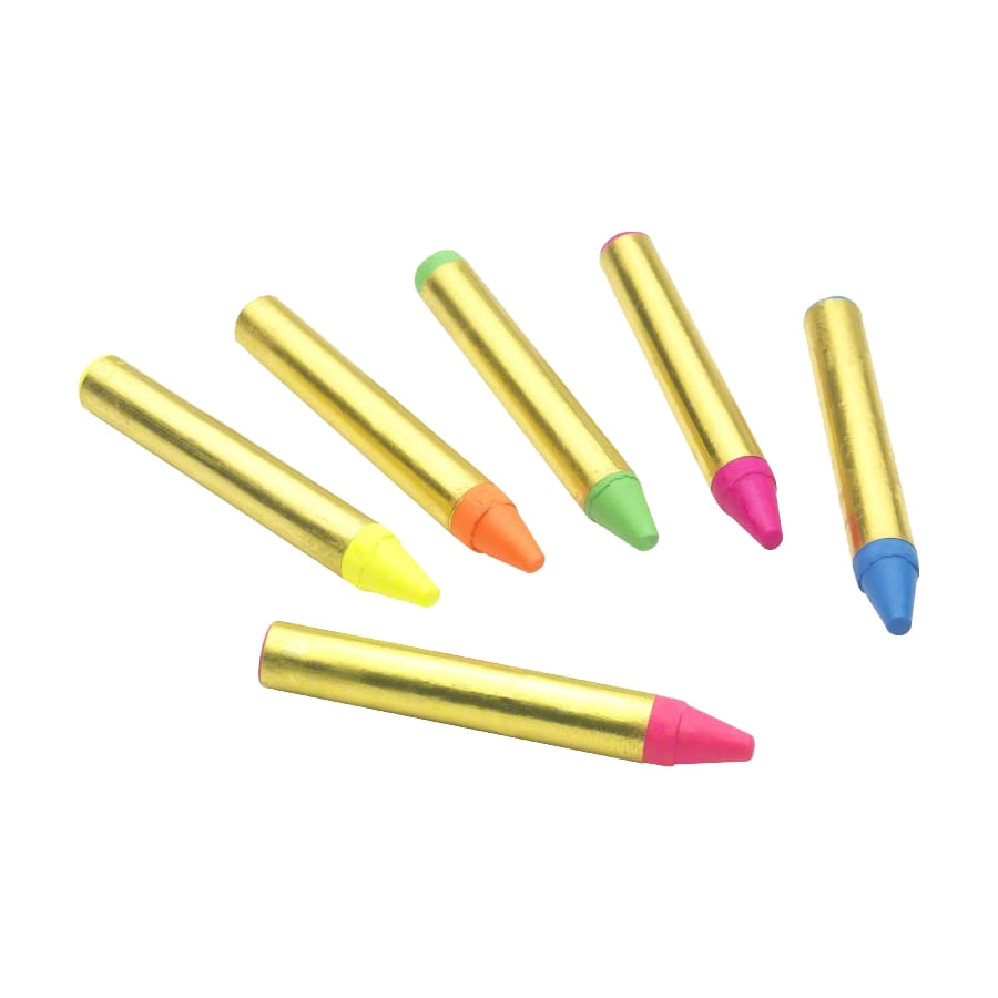Boîte contenant 6 crayons fluo phosphorescents, pour adultes ou enfants. Les couleurs incluses sont le jaune, le rose, le rouge, le bleu, l'orange et le vert. Servez-vous en pour vous maquiller.