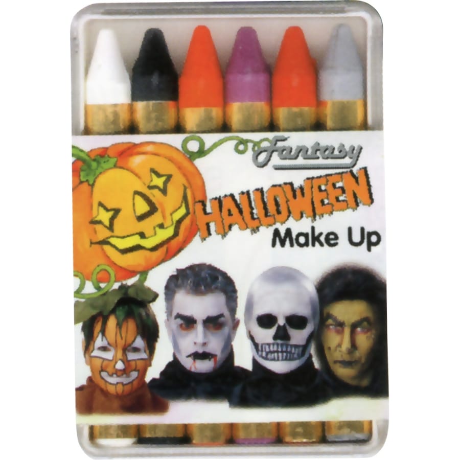 Pour faire un maquillage effrayant pour Halloween pourquoi ne pas vous en servir de cette boite de six crayon. Vous pourrez vous maquillez a l'aide de ces crayons de couleur blanc, noir, orange, rouge, violet et gris. Ces 6 crayons petits modèles vous pourrez aussi vous en servir pour le carnaval.