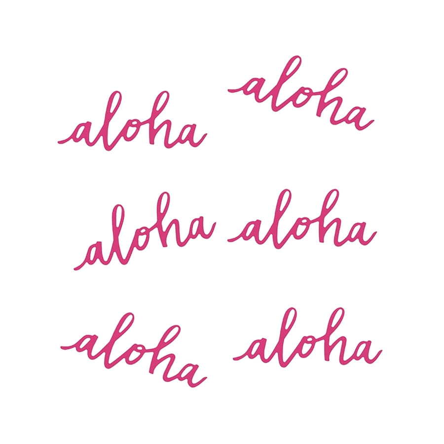 Les couleurs rose et vert règnent. Sur chaque article, vous verrez la mention « Aloha ».