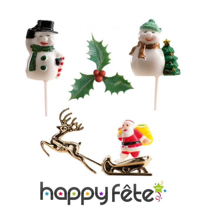 Kit de 6 décos pour bûche de Noël idéal pour parfaire une décoration à l'occasion des fêtes de fin d'année.