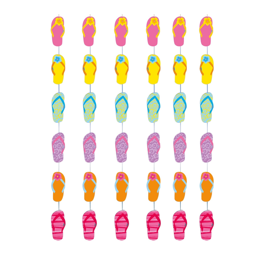 La saison des décorations passe à l'été avec ce lot de 6 guirlandes de tongs à suspendre. Ce modèle est constitué par une série de tongs aux formes variées et aux couleurs ensoleillées. Chaque guirlande fait 2,1 m de longueur. Choisissez sans hésiter cet article pour égayer vos fêtes, avec en prime une touche exotique qui rappelle les grandes vacances !