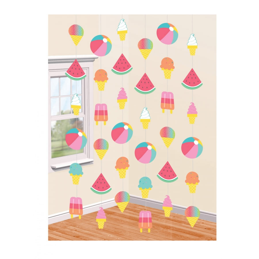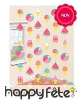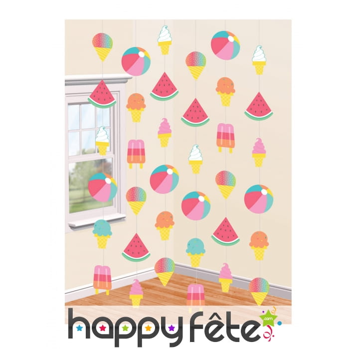 Elles sont composées de jolies fanions en carton représentant des tranches de pastèques, des glaces, des ballons ou des sucettes, principalement de couleur rouge et verte.