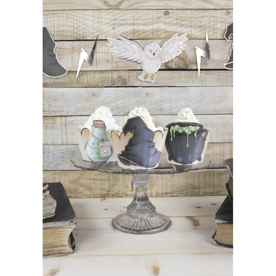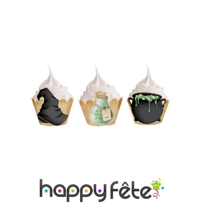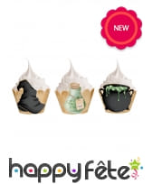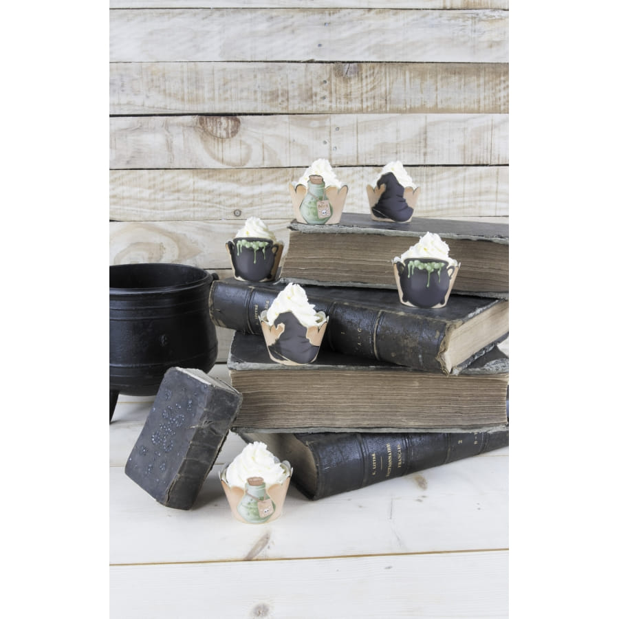 Plantez le décor pour une nuit d'Halloween mémorable avec les 6 habillages thème sorcellerie pour cupcake.
