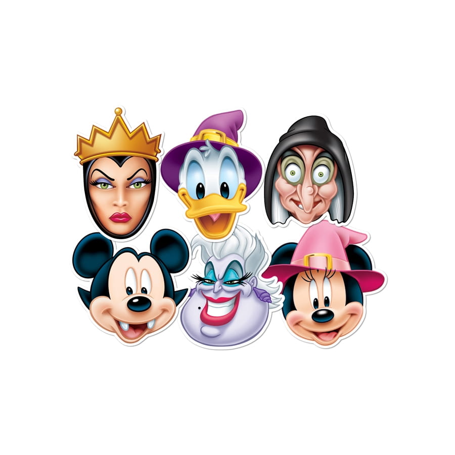 Nous avons mis ces 6 masques de personnages de Disney Halloween à votre disposition : le masque du fameux Mickey en version vampire, celui de Minnie et Donald déguisés en sorciers, d'Ursula : l'ennemie de la petite Sirène, et celui de la belle-mère de Blanche Neige en version vieille sorcière et reine sorcière. Ils ont été confectionnés en carton, avec une dimension de 30 cm x 23.5 cm. Cette dimension dissimulera aussi bien le visage d'un adulte que celui d'un enfant. Pour passer une soirée Halloween inoubliable avec les enfants, ne ratez pas ces masques !