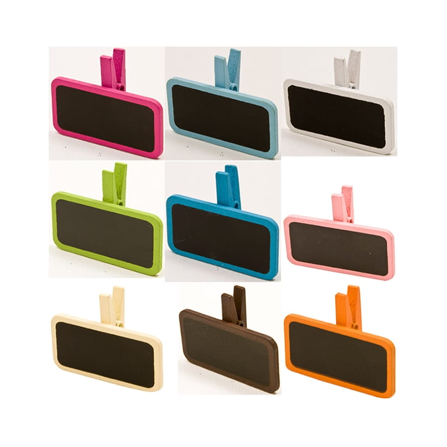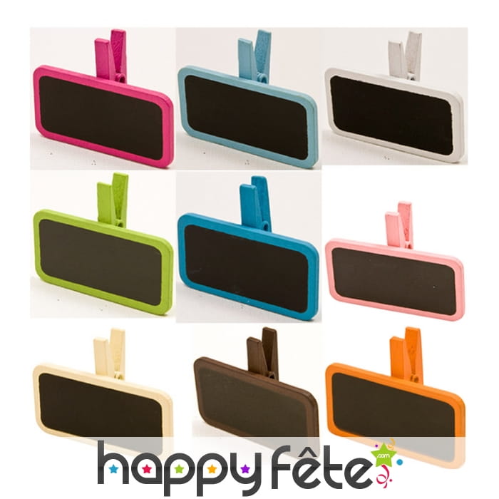Lorsque vous organisez une fête, il faut également penser à la place des convives. Pour changer des affichages classiques et être tout à fait original, pourquoi ne pas utiliser ces 6 mini ardoises avec pince ? Vous aurez à votre disposition 6 ardoises en bois mesurant 4 x 2cm de différentes couleurs, avec des pinces comme moyen de fixation.