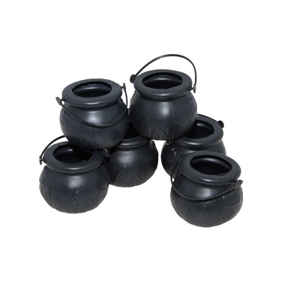 Peaufinez un décor qui sens la soupe de sorcière, avec ces 6 mini chaudrons noirs de 6 cm.