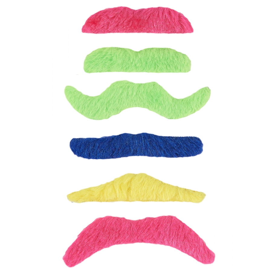 Pour donner une touche décalée et originale à votre costume de fête, portez l'une de ces 6 moustaches fluo adhésives pour adulte.