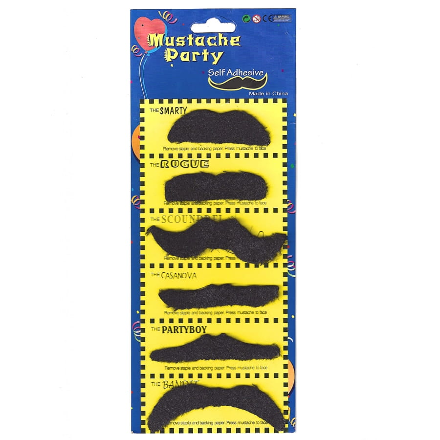 Le paquet de 6 moustaches noires adhésives multi-formes vous sera utile lors de plusieurs événements.