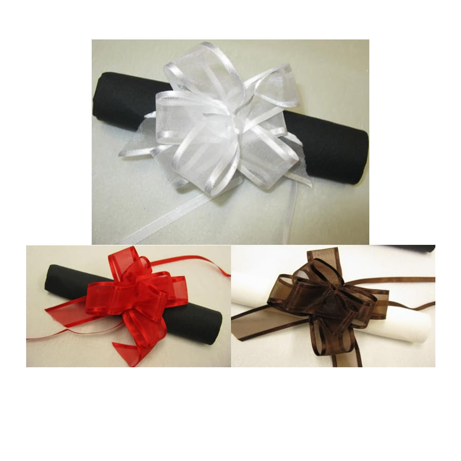 Pendant la période de fin d'année, tout le monde a sa liste de cadeaux à faire. Le lot de 6 noeuds à tirer en organza est conseillé pour apporter la touche finale sur l'emballage. Vous aurez le choix entre le blanc, le marron et le rouge. Les noeuds sont livrés à plat et il vous suffit de les tirer pour obtenir un magnifique ornement de cadeau.