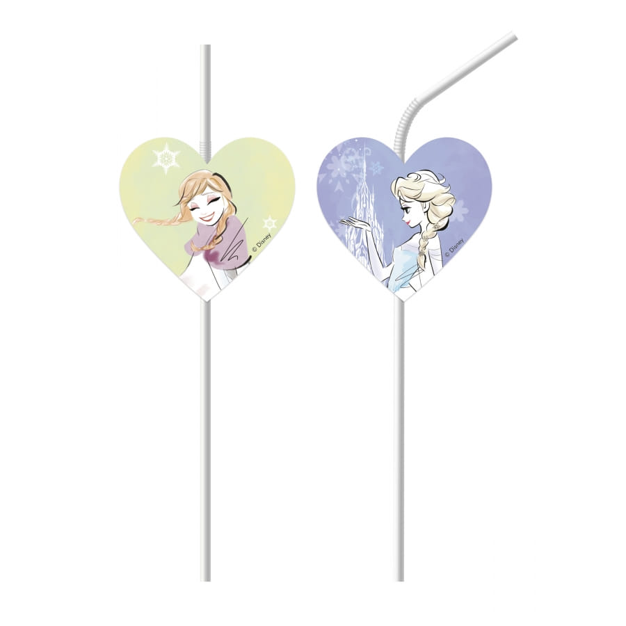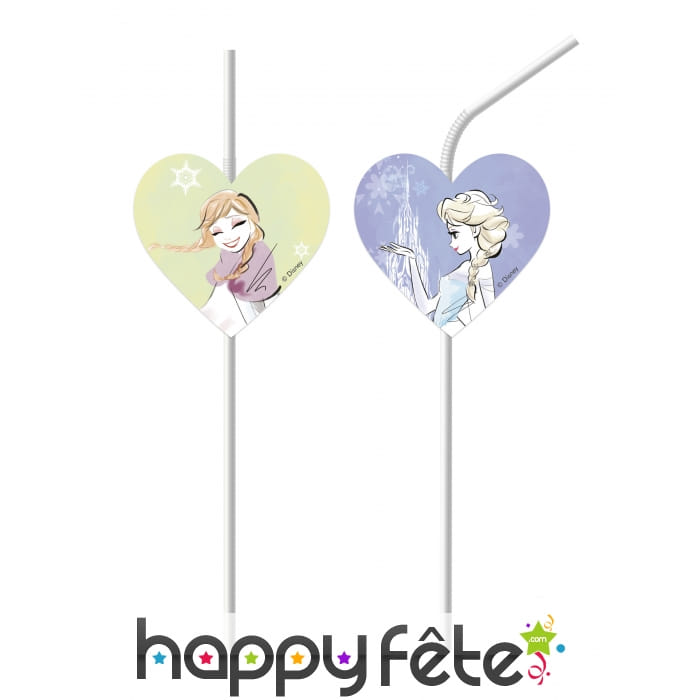 Les pailles La reine des neiges avec médaillon coeur sont vendues en lot de 6.