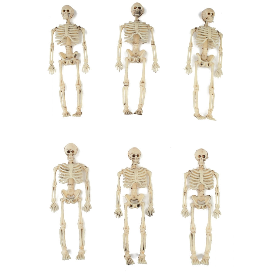 Les 6 petits squelettes de 15cm en plastique sont des accessoires décoratifs qui s'intègreront parfaitement à une décoration sur le thème squelette à l'occasion d'halloween.