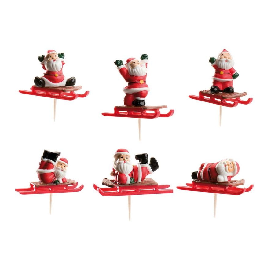Complétez votre décoration de Noël à l'aide de ce lot de 6 pics à bûche luge avec Père Noël.