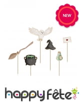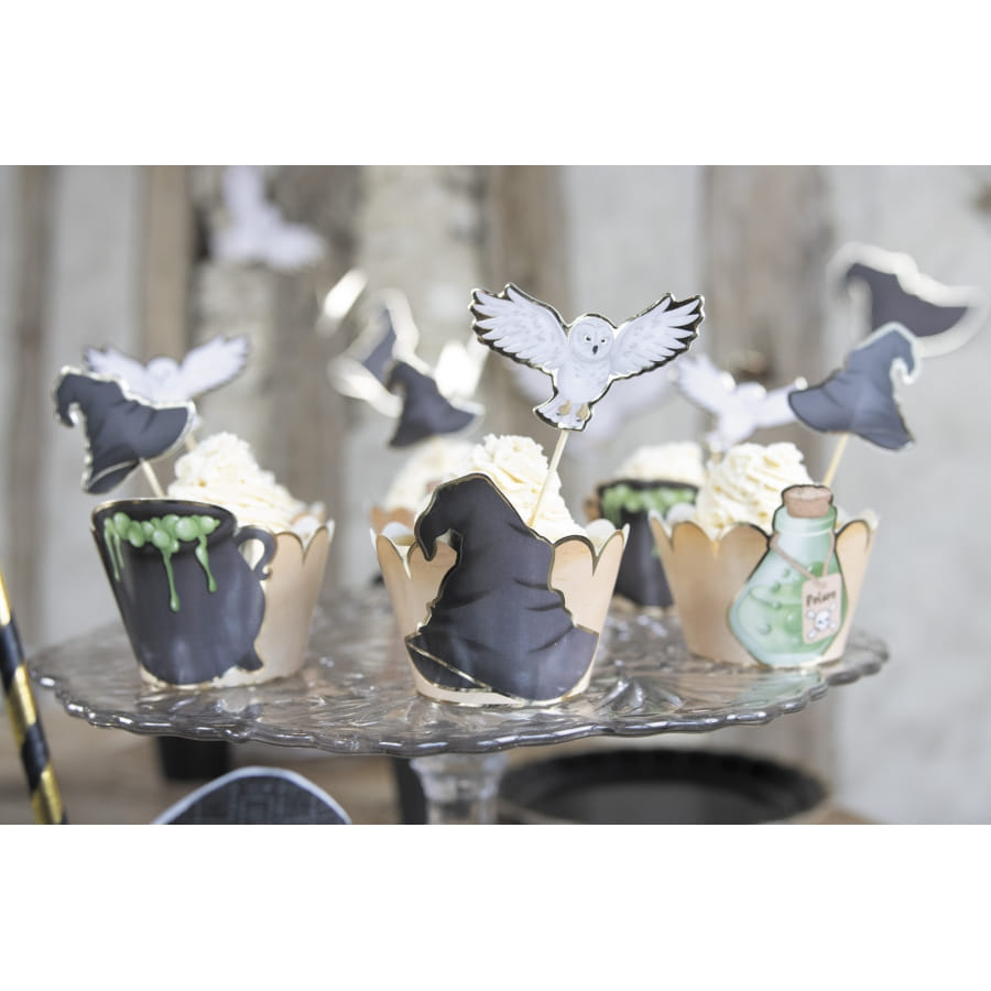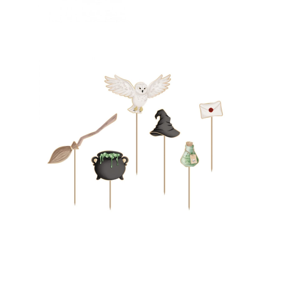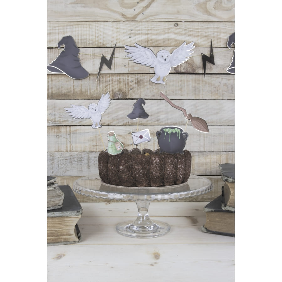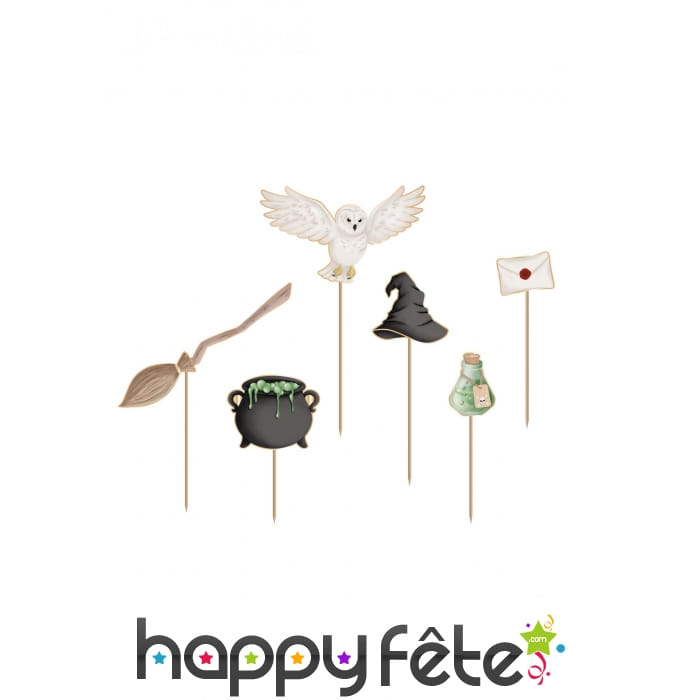 Plantez le décor idéal pour une soirée mémorable pleine de frissons, avec les 6 pics gâteau décorative thème magie sorcellerie.
