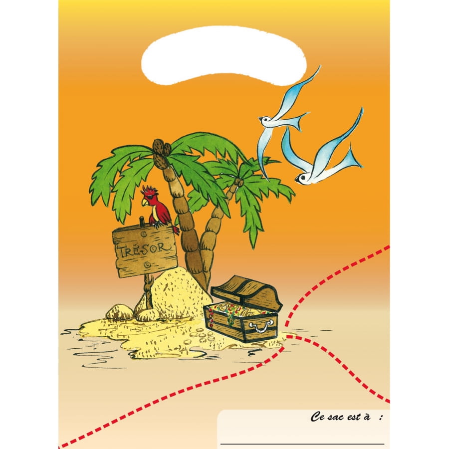 Les sacs cadeaux sont maintenant si personnalisés qu'ils constituent en eux même un cadeau à garder en souvenir. Les enfants vont adorer ce modèle à thème pirate. Il est de couleur orange et est décoré d'une superbe île au trésor. Il pourra être utilisé en toutes occasions, notamment pour Halloween, un anniversaire, une kermesse, etc. Il est à noter que les sacs sont vendus par sachet de six.