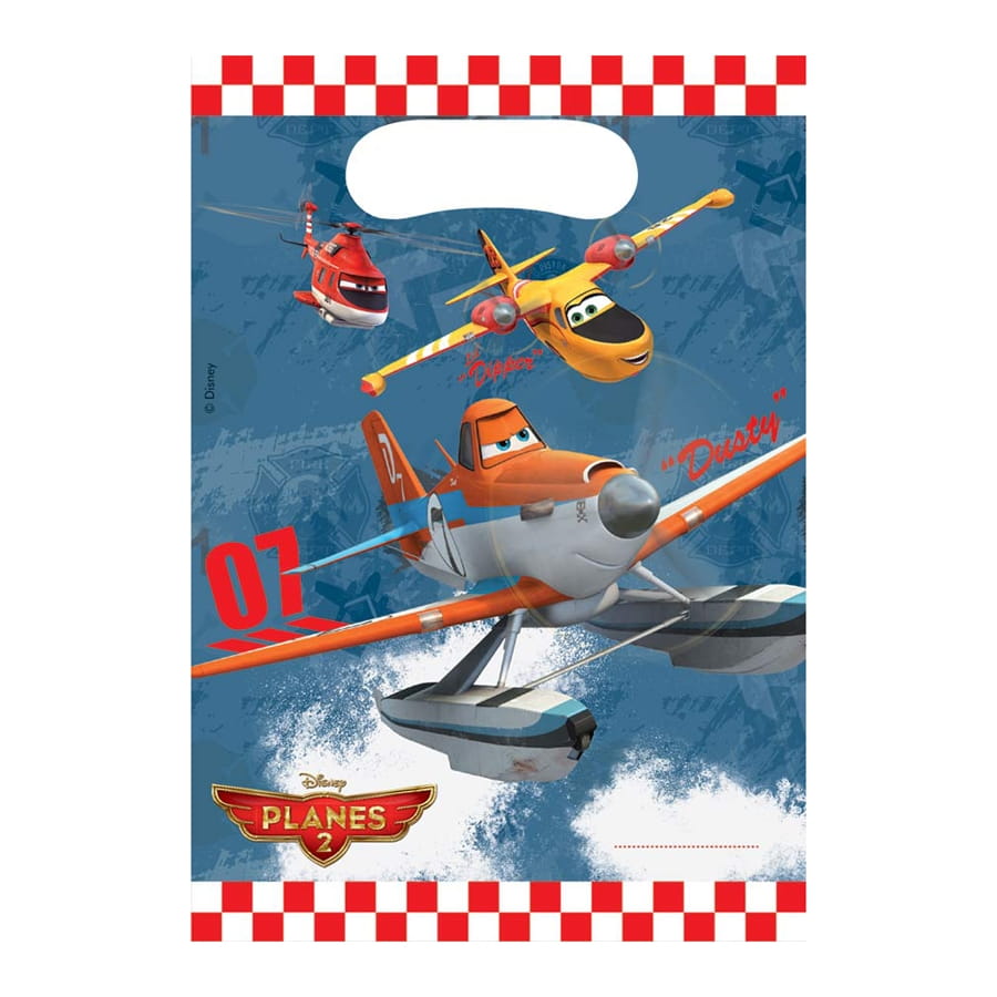 Cela prend du temps d'emballer les cadeaux, et c'est pour cette raison que nous vous proposons des sacs cadeaux qui feront office d'emballage pour vos cadeaux et qui sont déjà imprimés. Pour un anniversaire, la naissance d'un petit garçon ou un échange de cadeaux à l'occasion d'une fête, ces sacs cadeaux Planes 2 sous licence Disney feront bien des heureux. Ils sont vendus par paquet de 6 et sont en bleu et rouge. Pour une fête d'anniversaire sur le thème de ce dessin animé, vous aurez également des nappes, des gobelets ou des cartes d'invitation sur notre site.