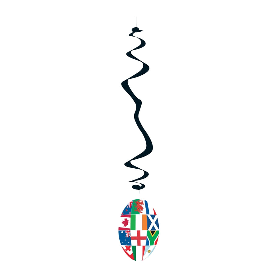 Avec ces 6 Suspensions ballon de rugby multi-nations, vous serez en mesure de transformer votre salle en un petit monde du ballon ovale. Cet article de décoration mesure 80 cm de haut. Pour l'anniversaire d'un passionné de rugby ou à l'occasion d'une soirée de match ou encore une soirée à thème «Sport», choisissez ce magnifique décor !